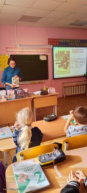 Библиотека, в свою очередь, с учениками начальной школы №3, активно присоединилась к этому масштабному мероприятию. Для юных читателей была организована тематическая выставка книг, посвященных героическим страницам истории Великой Отечественной войны. Каждая книга сопровождалась рассказом, раскрывающим её содержание и значение. Особое внимание было уделено громкому чтению произведения К. Паустовского «Похождение жука-носорога».